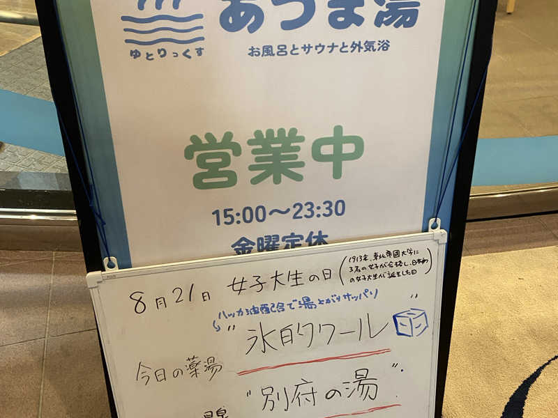 今日も気持ちいいサウナをありがとうございました。形は色々とあるとおもいますが、あづま湯さんがいつまでも続いていきます様に😊