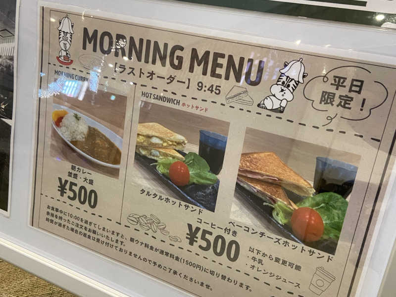 食事朝メニューねホットサンドがありました。今日は残念ながら朝ごはんは食べられない😭