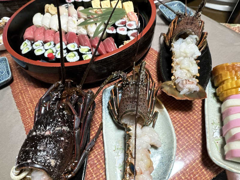 《伊勢海老祭り》 箱根駅伝見てたら13時枠が14 時枠?青学ゴールイン後のチェックイン。24時間振りの仙台サウナーとお久しぶり。自宅は寿司祭り&伊勢海老祭り最高!締めは伊勢海老味噌汁です
