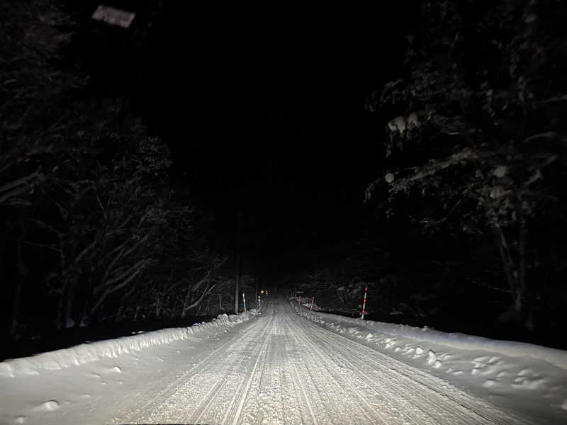 《冬シーズン1の雪道》 下界は寒波到来も思いの外積雪もなく17時到着予定で出発。永野近辺から積雪。やはり山は雪多し。噂の年パス新メンバーと間もなく年パスメンバーを加え新旧顔合わせサ活。1日の休汗日ではまだ本調子に戻らず。今週8.9日は休館日なので何処かでリカバリーですね