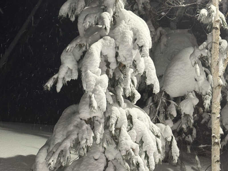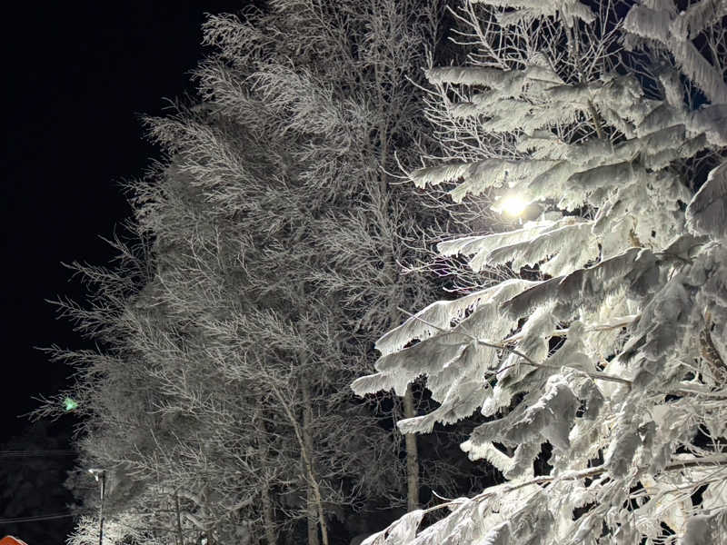 《モンスター出現》 もう数名しか来ないのに退勤前にせっせと雪かきをするスタッフ。吹雪の中ご苦労様です。湿気を含む風雪の為モンスター(樹氷)もだいぶ成長するのでは?入口近くにもミニモンスター出現!No2と一緒に1セットの計3セット。お昼は地元「手打ちラーメンキセン」白河から上山市への出店。応援します♪