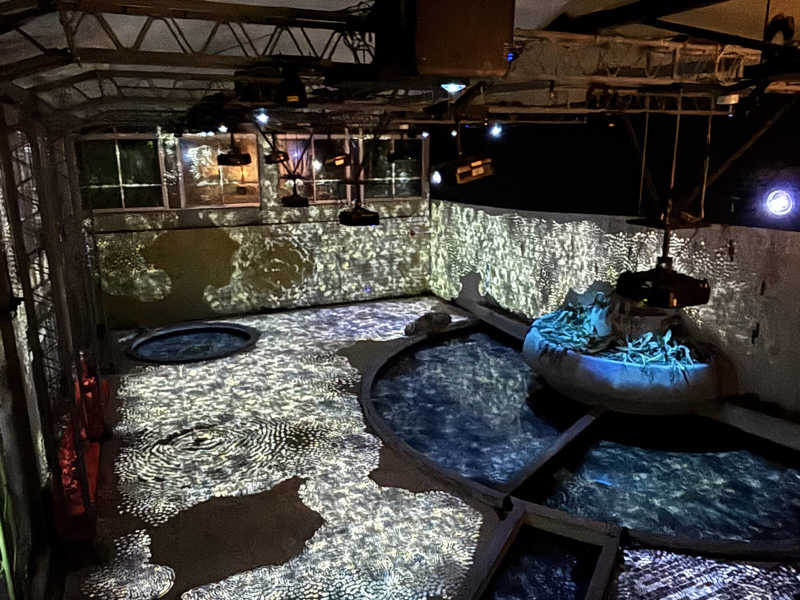 スゴイサウナ系列お馴染みの富士山溶岩や天然鉱石で濾過された水風呂。他の水風呂とちがって水温の割には長く入れるからめっちゃ好き。左側にあるボタンを押すと水流が発生してはごろもがとれる。水流ない方が個人的に好きだけど人それぞれ😌