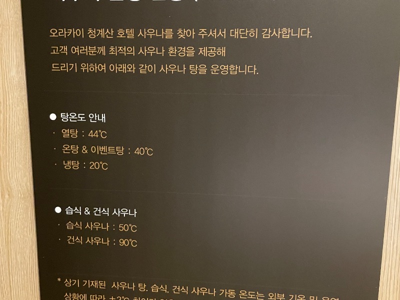 90°Cのドライサウナはコーナーにサウナストーブがあり、L字型の1段ベンチがあり並んで10人くらい座れます。地面に座ると20人くらいは収容できる比較的大きめなサウナ室です。サウナマットは無いですがタオルが使い放題なのでケツに敷くことができます。またサ室には温度計も湿度計も時計もありませんが、ガラス越しに浴場にある時計で時間を測ることはできます。ドライサウナなので汗をかくのに時間がかかりますが、自分と向き合いながら韓国でサウナに入れるありがたみを感じることができます。