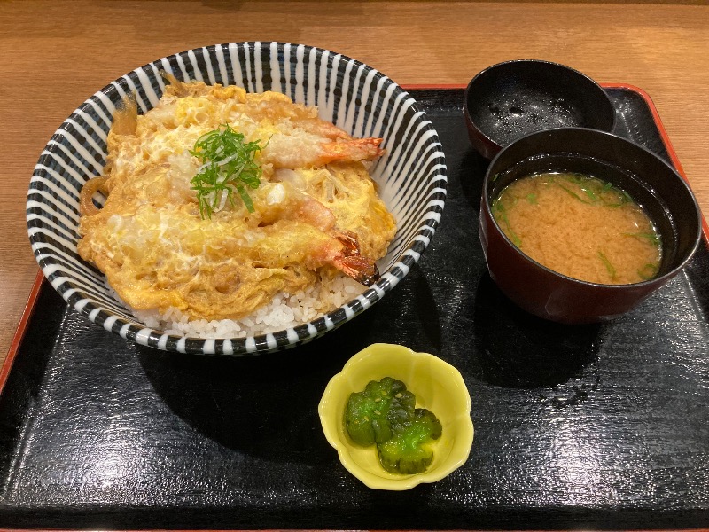 海老天麩羅玉子とじ丼🍤🥚美味しゅうございました(*´꒳`*)