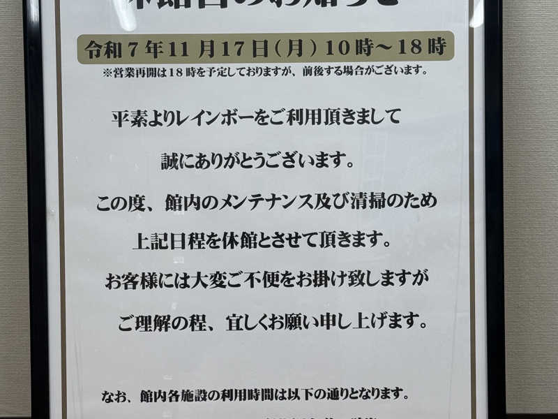 一言:今日のサ室の温度🌡は出入りが多いのかやや温め…水風呂と不感湯♨️の温度は良かった😊