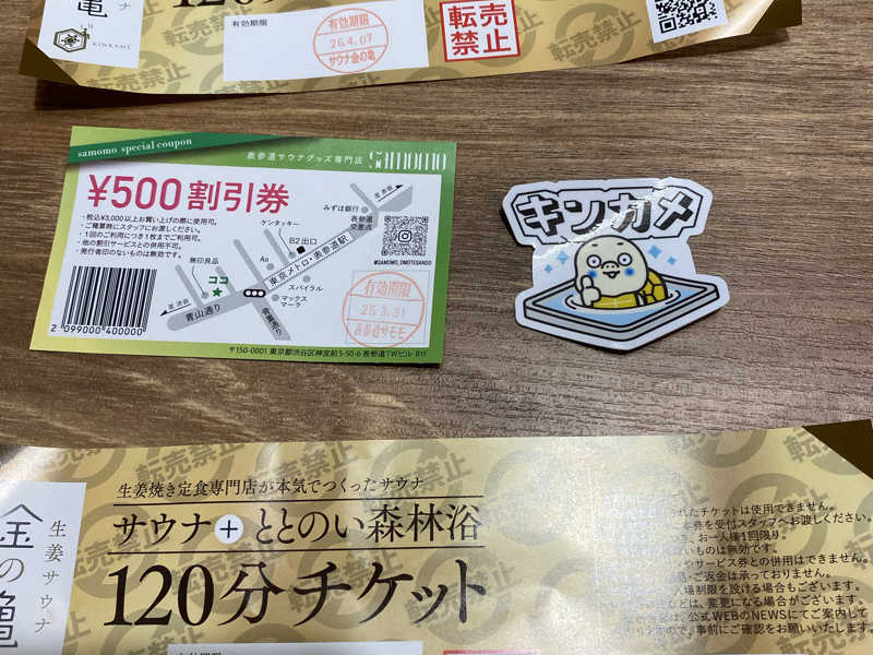 かわいい子が受付🤭 サウナイキタイを見せて¥200引き👍&❎を見せてステッカーゲット&120コースチケットゲット2枚