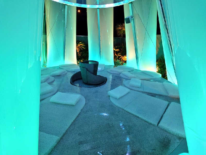 浴室内の水風呂横にあるイスで休憩していても心地よい風があって、窓が開いているのか周囲を見ても風が入るような場所もなく、通気口も見当たらず不思議だった