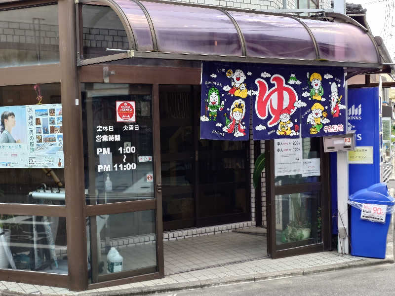 建物もフロントもコンパクトな銭湯で、番台のおじさん以外にテレビの前にもおじさんがいて「いらっしゃい」