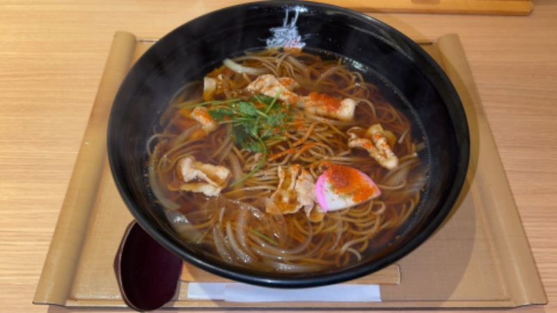 食事処で四元豚の肉蕎麦を麺大盛りに七味を大量投入して微妙に冷えた身体を温めてから、前日のサ活投稿をピコピコまとめる