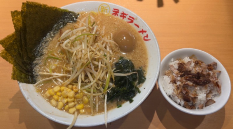 まずは『○新 ネギラーメン』に立ち寄り、1日50食限定の「ネギ味噌ラーメン」にトライ