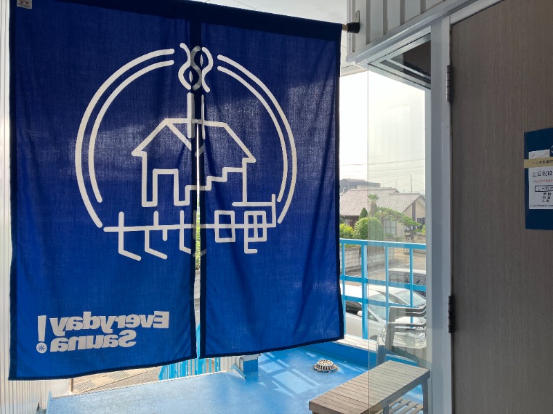次こそはゆっくり来ようと思いつつ着替えて玄関を出ると、風にそよぐ暖簾には毎日サウナの文字。