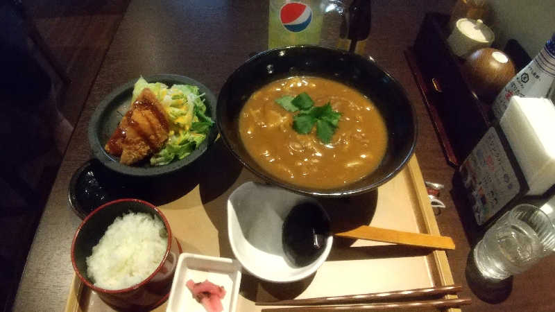 お昼ごはん。 湯楽の里、喜楽里のレストランは、どこもカレーうどんを推してますね。