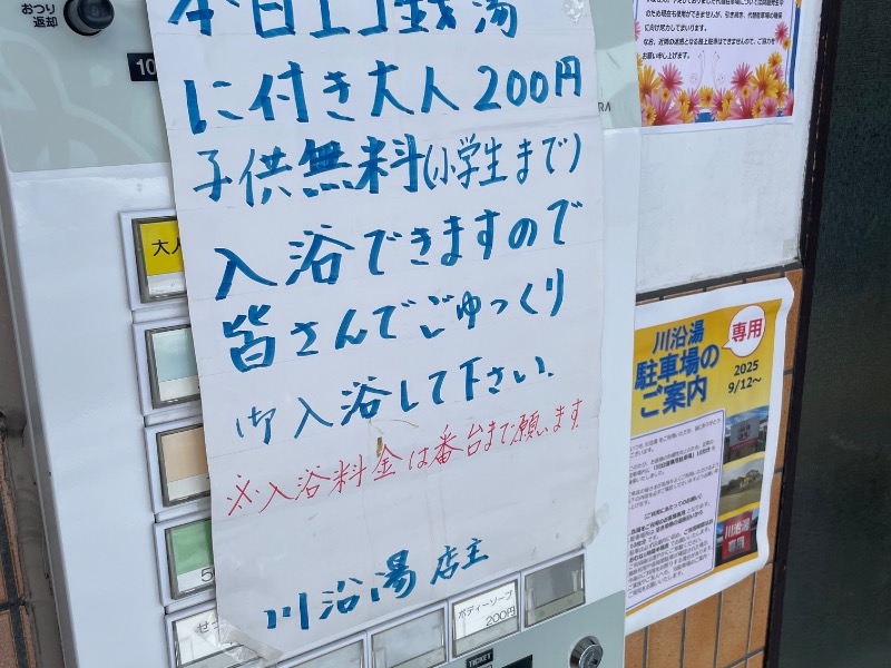 たまには帰りにどっか銭湯でも寄って帰りたいなーと思い帰り道にある川沿湯へ