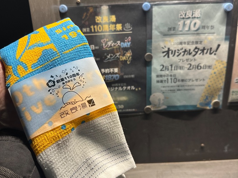 今夜も改良湯♨️🐳 今夜は3人組のグループが多かったから サ室の混雑度合いが激しく、待ちがあればガラガラの時も笑 記念タオルやっとゲット✨