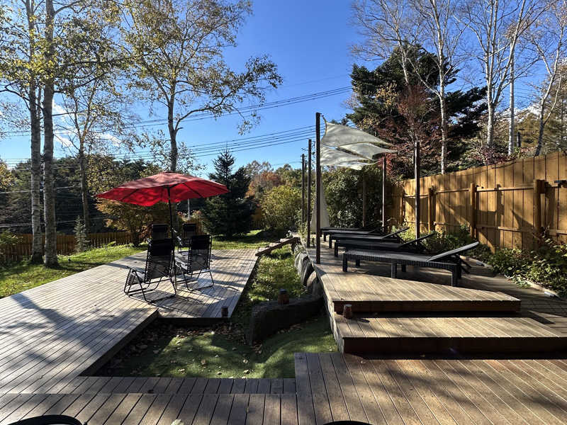 休憩は露天ゾーンにベンチと椅子が1脚のみで、椅子争奪戦になるか…?と思いきや、地元民は水風呂の後に休憩を挟む習慣がないようで(わたしも昔はそうだった…!)毎回のんびりと椅子に座って休憩することができて、大満足。