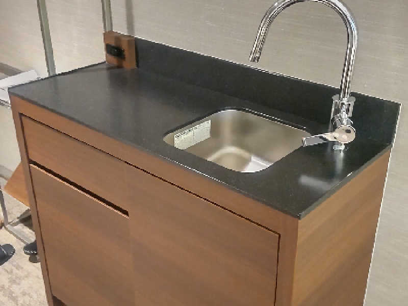 併設のホテル、ヴィラフォンテーヌグランド東京有明の部屋にシンクがあることに夫婦揃って驚き👀今まで泊まった事のある部屋では初めてかも、夜飲む時にお酒が作りやすそうで良い👍
