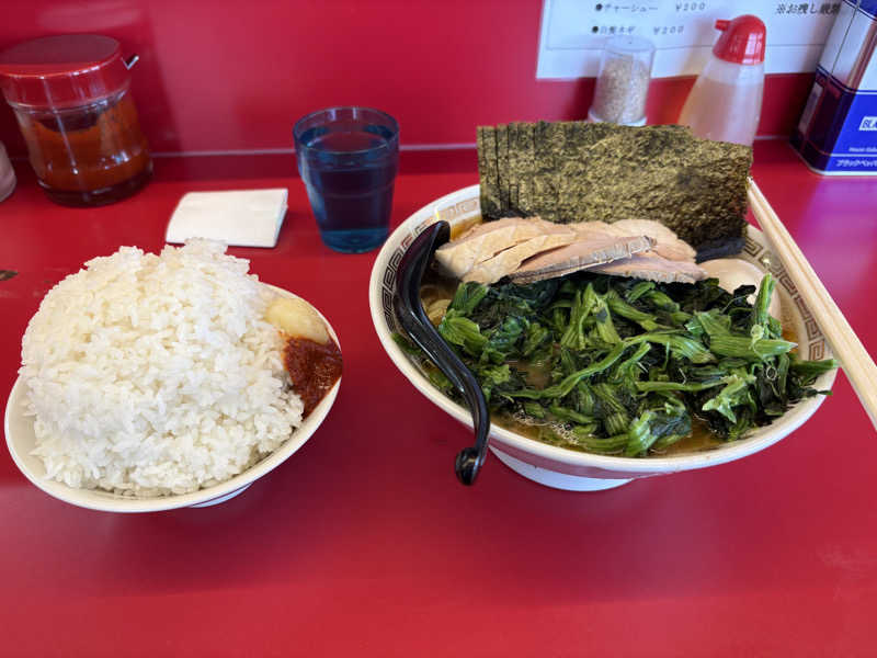 トントゥありがとうございます😊 家系ラーメンって言われてみるとスープ少ないとこ多いかもですよね🤔そのスープに浸したほうれん草をご飯の上にのせてチャーシューと豆板醤&ニンニクを少しのせて海苔で巻いて頬張るのが本当至福の時ですよね🤤麺をすするよりそれを楽しみに行ってると言っても過言ではないですね🤣