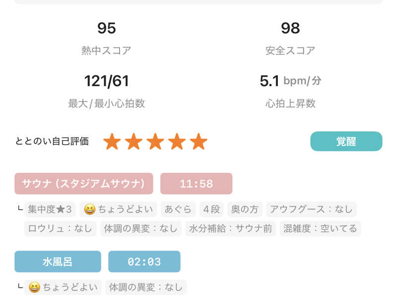 全てスタジアムサウナ5段目最上段にて蒸され、、