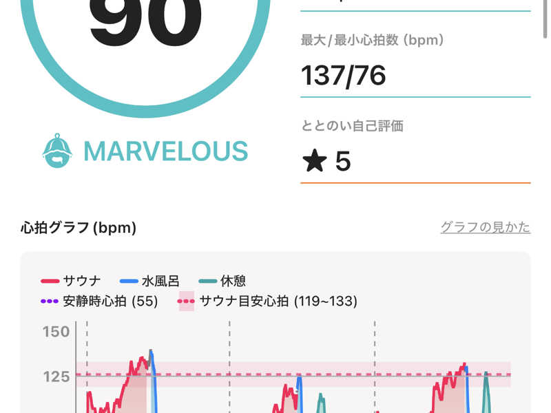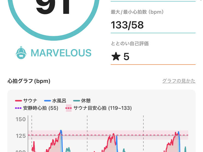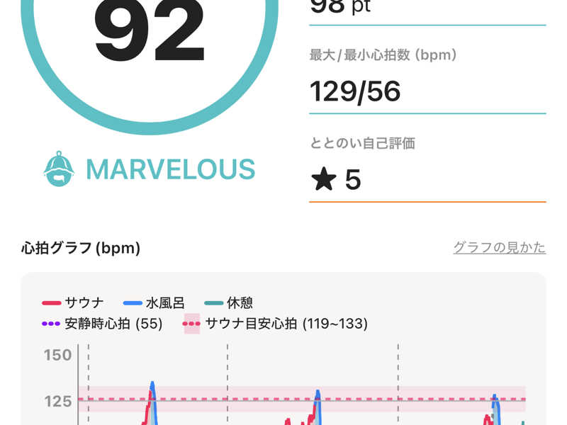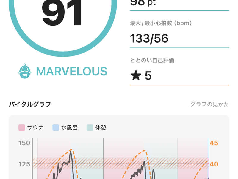 心地よい風と3段階のロウリュで3回目はかなり暑くなって完璧!