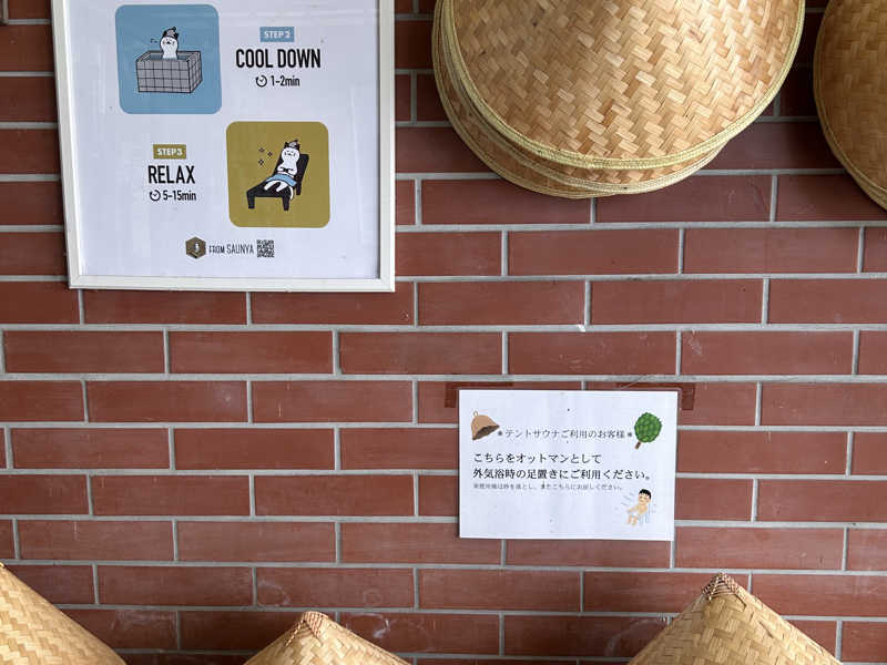 こちらも外気にベンチ一台。15分入っても芯から温まらないので、ととのえない。それでも3セット