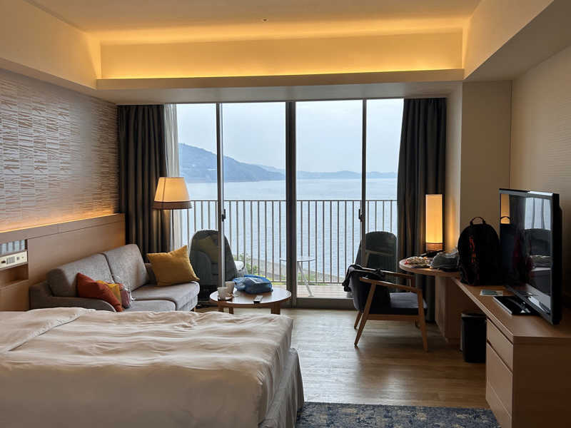ゆとりがあって海を眺めながら入れる。天気が良ければもっと綺麗だっただろう☔️