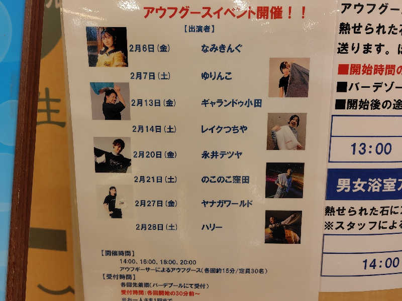 ネパドルなみきんぐさん、今日は岩盤浴で2回、女性浴室で1回のイベントです。