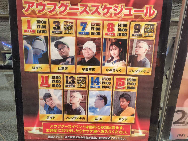今日も、サウナ界の純烈を目指すこと、今回の遠征が今日で最終日であること、オリジナルの6曲がすべてのサブスクで聴けること等々…合間に話がありました。