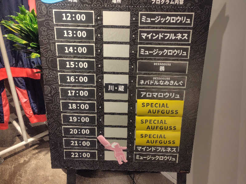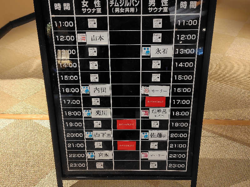 で、本日の会場は岩盤エリアの大汗汗蒸幕というところで、ドーム状のかなり狭い部屋、入口も低くて熱がこもります。温度計表示88℃と、岩盤浴にしてはかなり高いです😲定員16人のところ半数以上なみきぞくで整理券押さえちゃいました😅