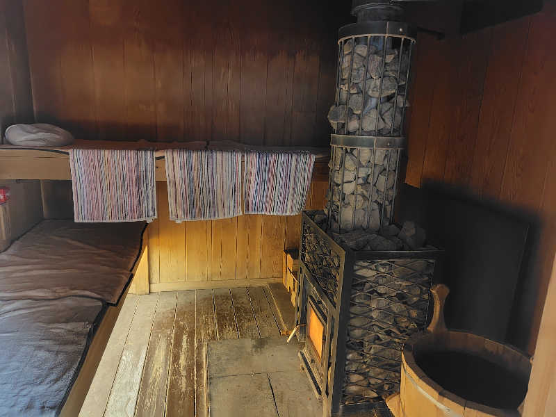 ストーブは遠赤外線タイプのため、アウフグースは別途熱したサウナストーンを持ち込んで行われます。しかし、これが結構しっかりアツかった。