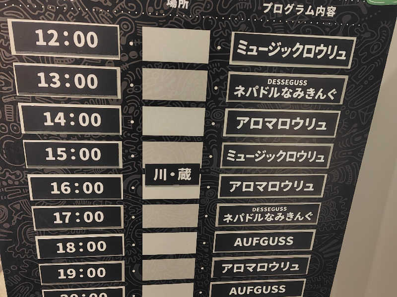 19時半から爆風アウフグース。個別にブロワーぶっ放すやつですけどね。