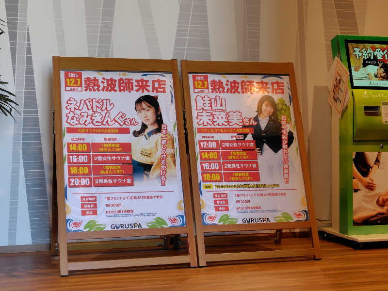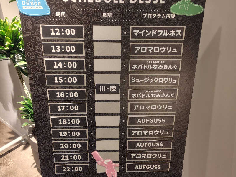 アウフグースは"一応"1人1枠限定ということで、入館後、14時回の岩盤浴での2人のコラボ回を申し込み。