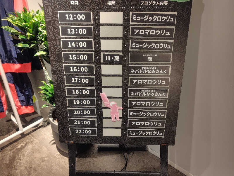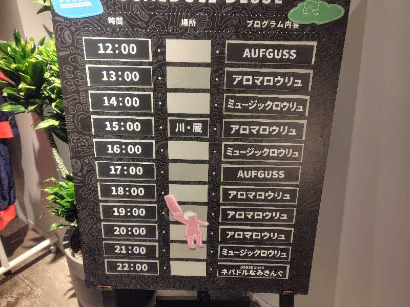 アロマロウリュ、ミュージックロウリュなどを経て22時。