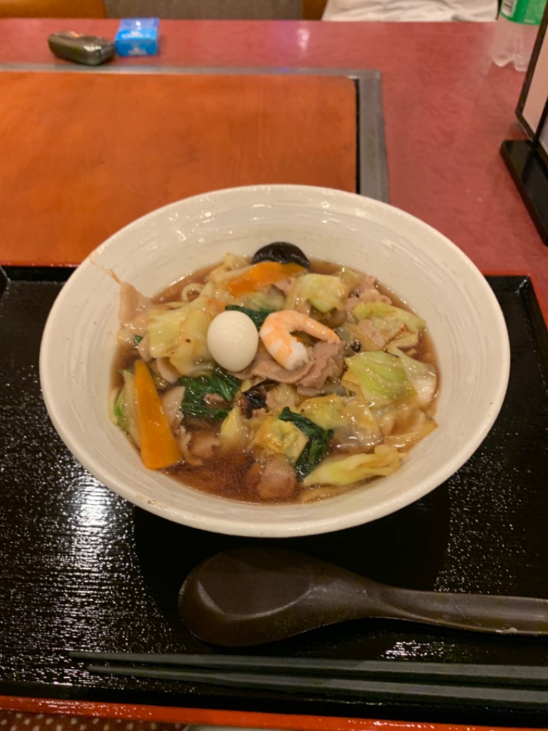 私とジーズさんも復刻のあんかけラーメンを注文して