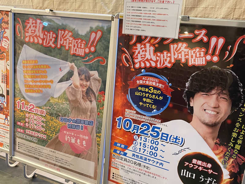 3セット目のラスト、「熱くしますね!」とにっこりグッドポーズからのロウリュ🔥