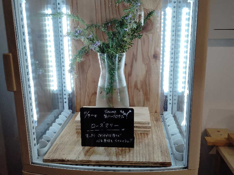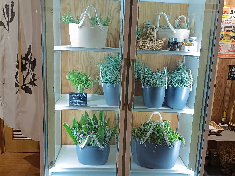 移動したハーブ🌿冷蔵庫でまずはルーティン。物販を見ると、新色のSANIBOがあって思わず手が伸びそうになるのをグッと我慢して浴室へ。
