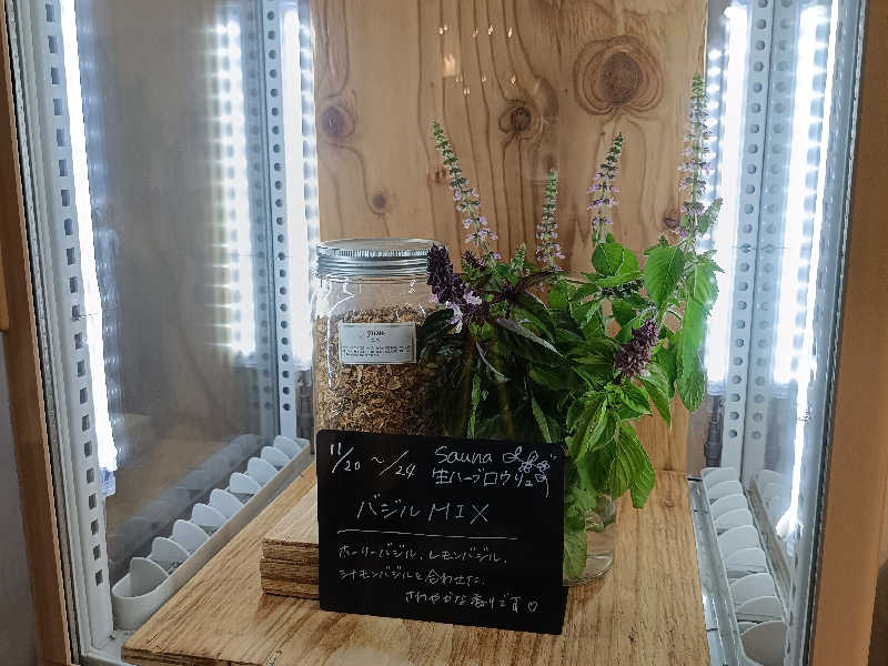 生ハーブ🌿被り席に陣取って、モリモリのハーブにオートロウリュが重なり香りマシマシの10分。