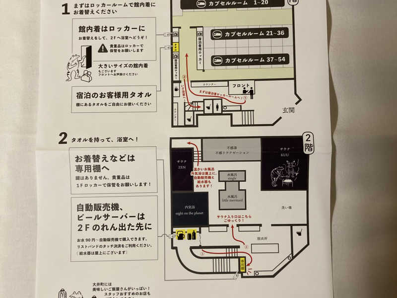 広い館内に迷いながらに向かい、手前でタオルと館内着を受け取る