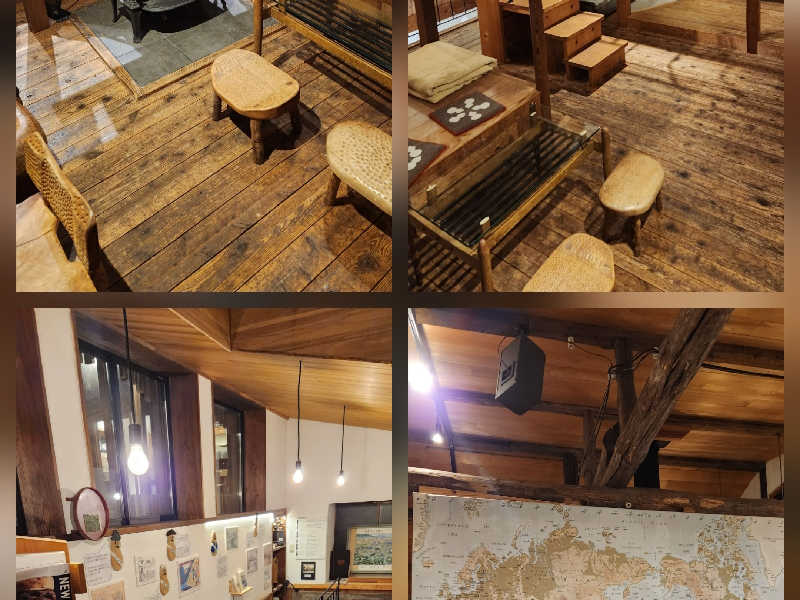 雑貨屋出て階段降りてカフェ店内通り階段降りて更衣室とサウナの案内を店主がしてくれる