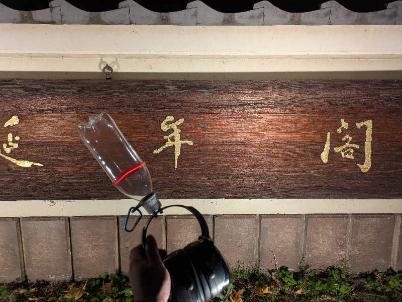 いったん出てすぐ19時のロウリュに備え電気⚡️団扇🪭(ケーズ)🤣を手にしてinしようとしてたところをジョーレンズに見つかる🤣
