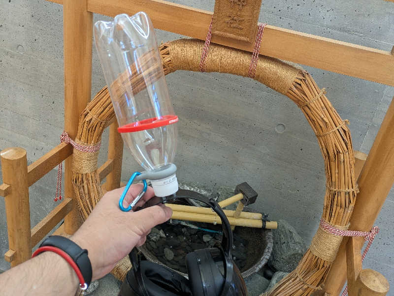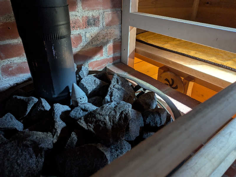 結論から言うと目視は難しい(笑)石が鳴る音は確かにする(笑)水量的にはたぶん10ccくらいじゃない?後は7分毎に誰かがロウリュした時の音がなるボタンを押してるか🤣