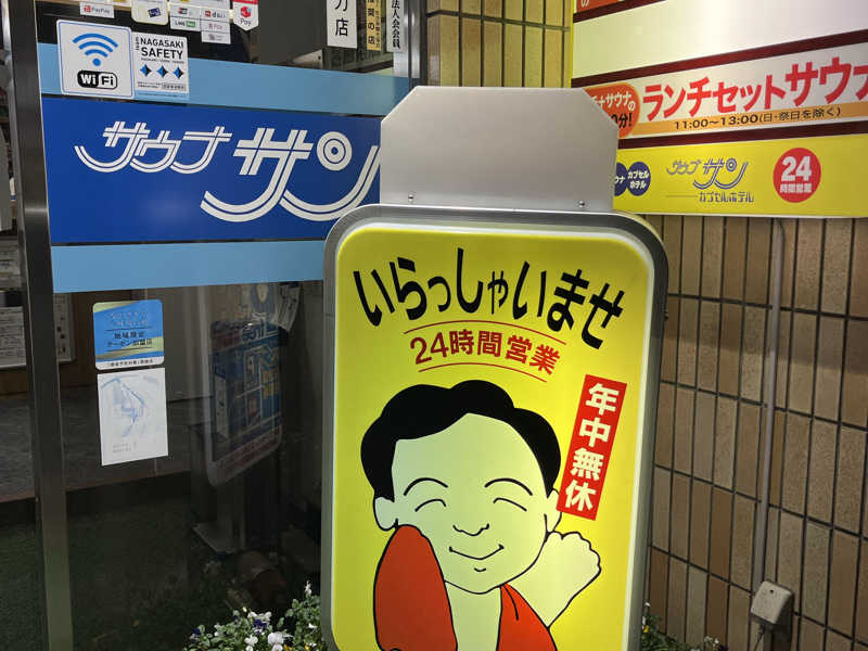 福岡に引っ越して来て早2年。。いつでも行けると思いずっと言ってなかった場所。サウナサン。サウナ良かったです。特に新しい?真ん中のサウナ。温度感や静かさ、個室感など自分にはぴったりの場所でした。佐世保という場所も素敵ですね。水風呂の温度も冷たすぎず自分にはぴったりでした。でも何より良かったのはスタッフの方の愛想の良さです。やはりいい人のいる場所には人が集まりますね。。。夜は少し暑く、またイビキがうるさく眠れずなんてことはありましたが、、、笑