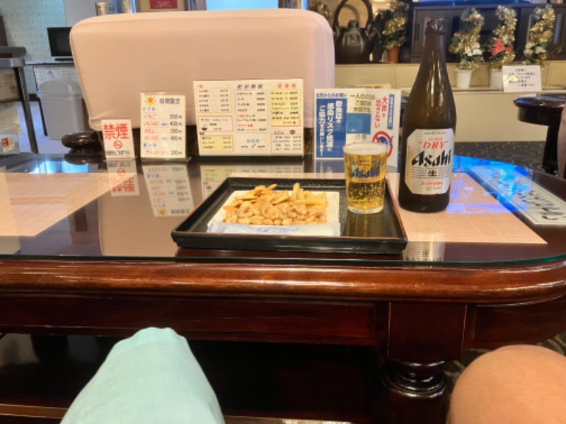 サ飯は館内で瓶ビールとおつまみでゆっくり昼飲みする幸せ♪