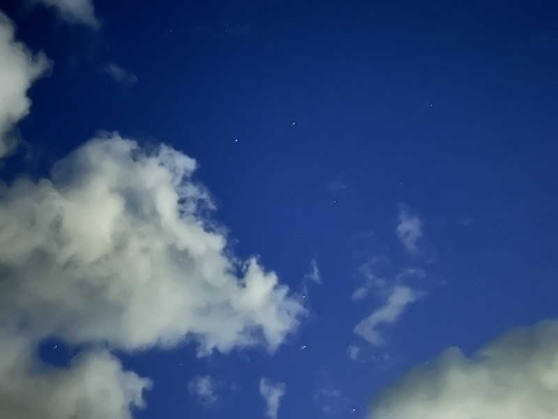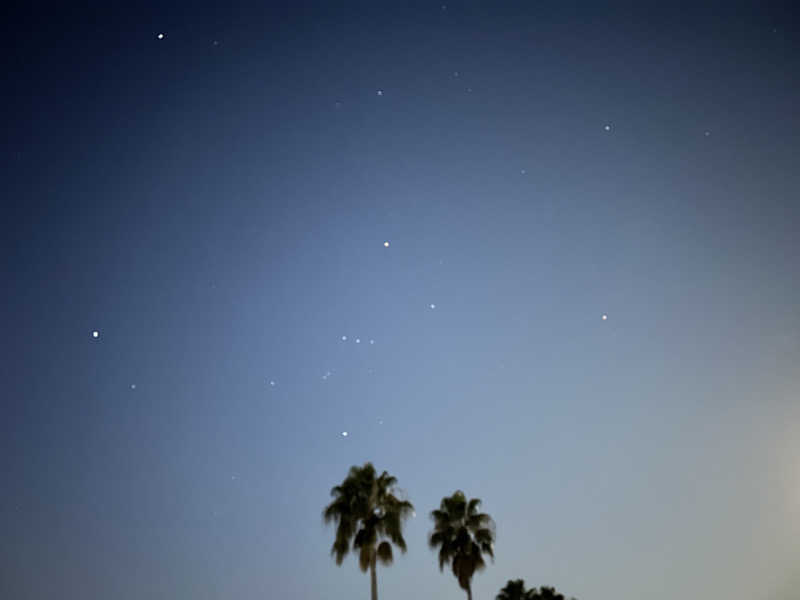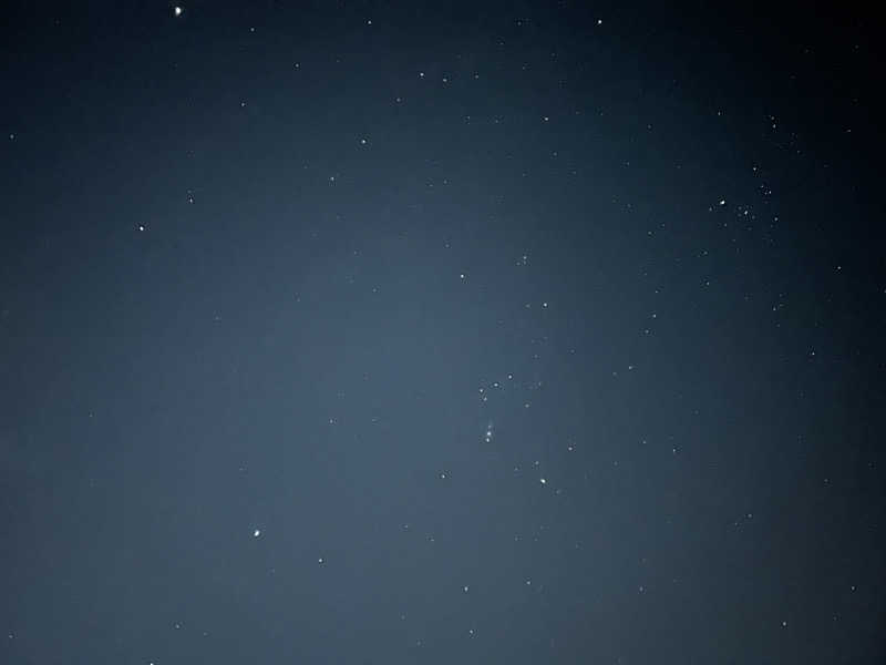 曇り空 隙間の有明月🌘とオリオン座🌌