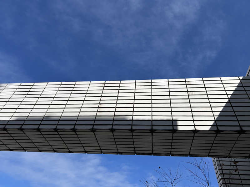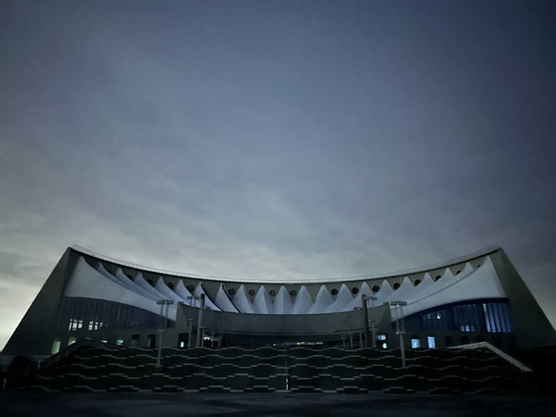 この建物は水族館🦭で正面の道は東西南北の方位に伸びている