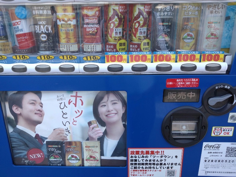 今時100円の自販機! 京都は安いのか高いのかわからん!