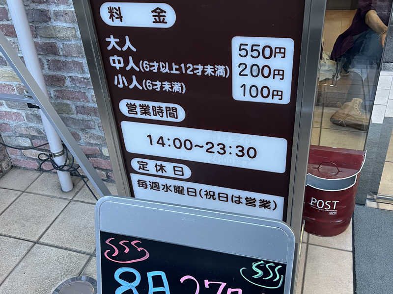 水風呂は常連さんらしき人の『今日はぬるいわね〜』と言う会話。夏の時期あるあるで、水風呂も温度が少しだけ高めになっちゃうのかな。普段は18℃らしいです。