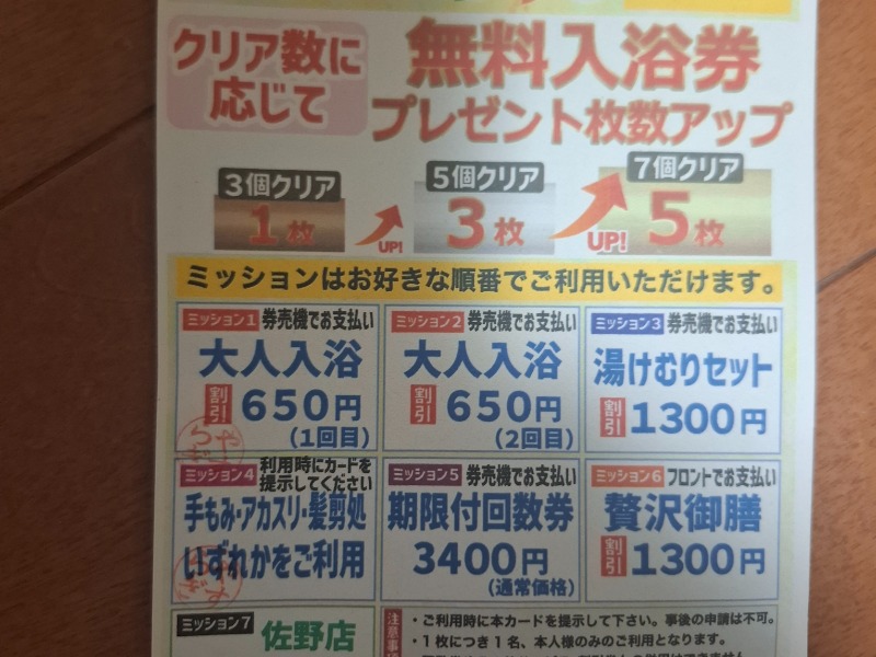 これで佐野に行けば、無料入浴券をゲットと