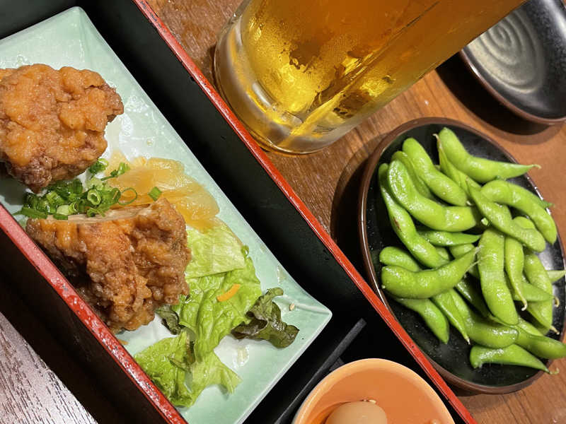 寝湯と炭酸泉が待てど暮せど空かなかったので、このタイミングでご飯へ。