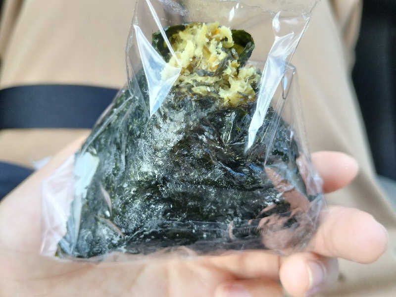 お昼ご飯は道の駅の裏側にあるおにぎり屋さんで高菜山わさびおにぎりを購入。