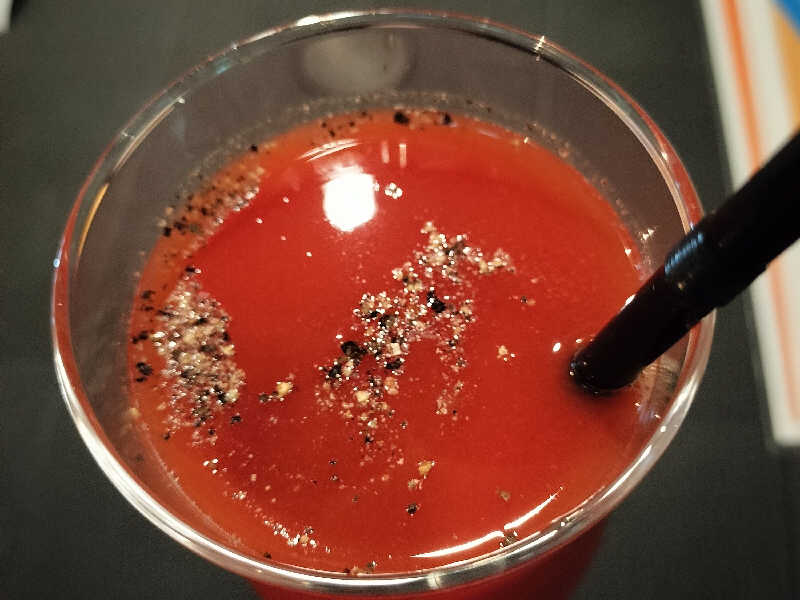 休憩で水風呂に入り特製デトックスウォーターをいただく。ほんのり感じるスイカの甘みが美味しい🍉